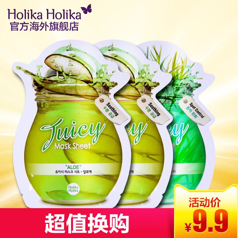 [9.9元换购]韩国holika 果蔬茶树 芦荟面膜共3片