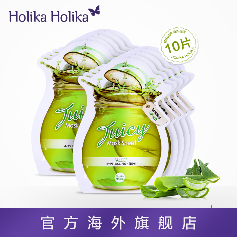 韩国HOLIKA果蔬芦荟面膜10片 舒缓保湿水润晒后修护收缩毛孔