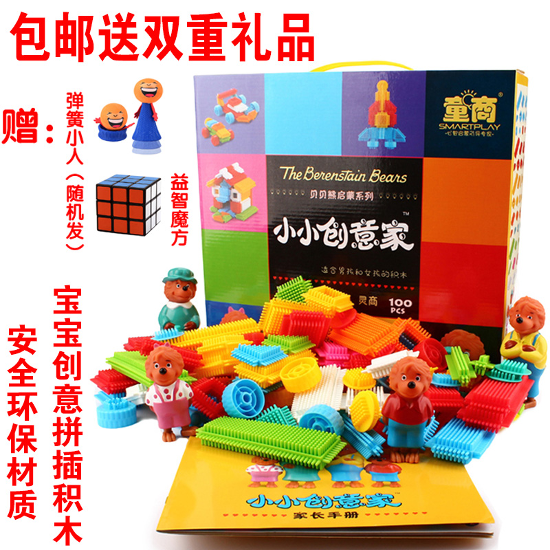 童商贝贝熊小小创意家儿童早教益智宝宝拼插拼装刺刺积木塑料玩具