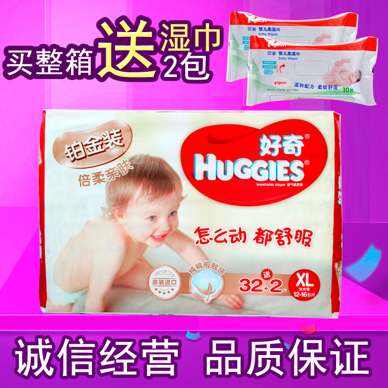 好奇铂金装倍柔亲肤婴儿纸尿裤尿不湿纸尿片超值 加大XL号32+2片