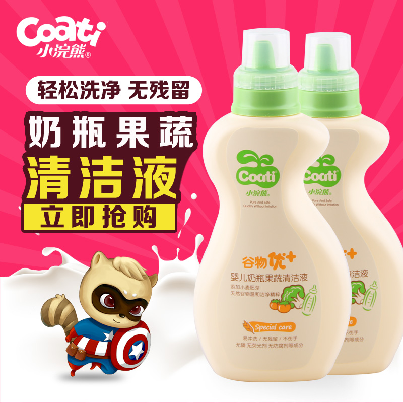 小浣熊谷物婴儿宝宝奶瓶清洁剂液清洗剂 果蔬洗涤剂消毒800ml*2瓶