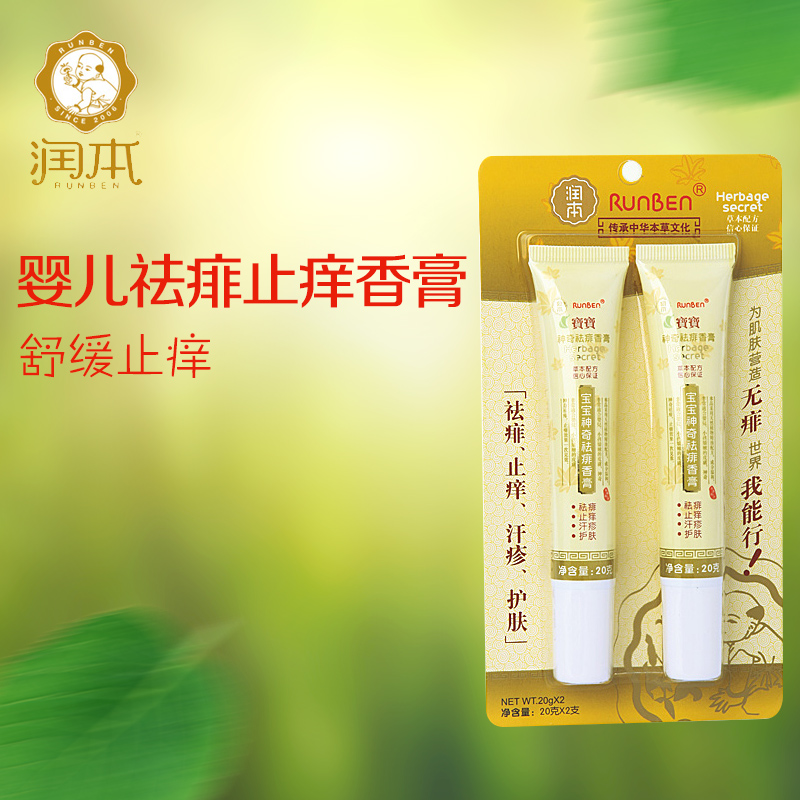 润本婴儿祛痱止痒香膏 宝宝防痱止痒膏儿童祛痱膏护肤香膏2支装