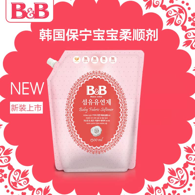 韩国保宁宝宝柔顺剂 B&B婴儿衣物纤维柔顺剂柔和香 补充装1300ml