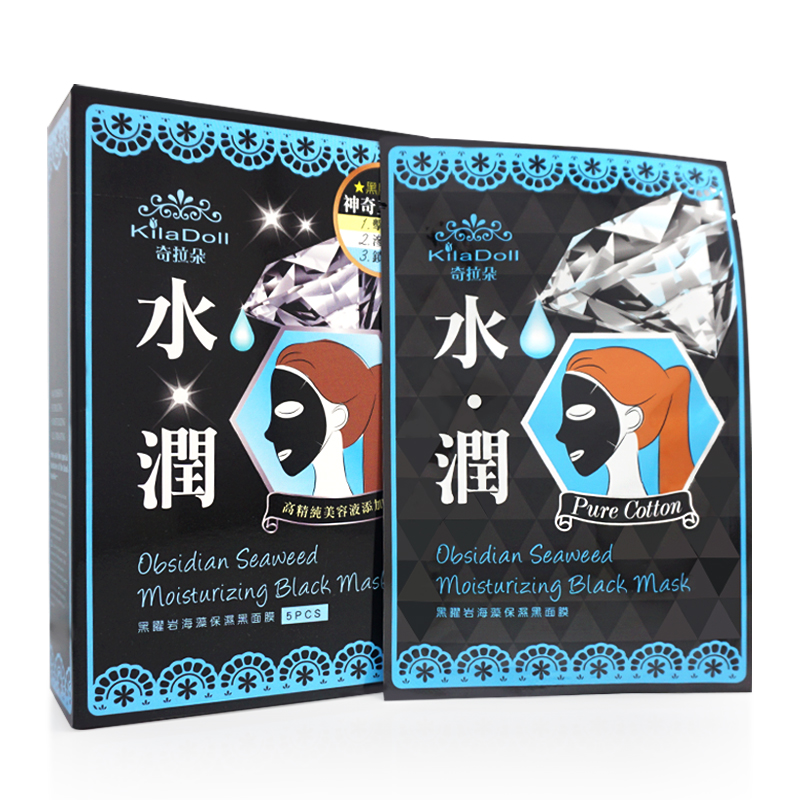 包邮包税 奇拉朵黑曜岩海藻保湿黑面膜5片/盒 纯棉黑面膜