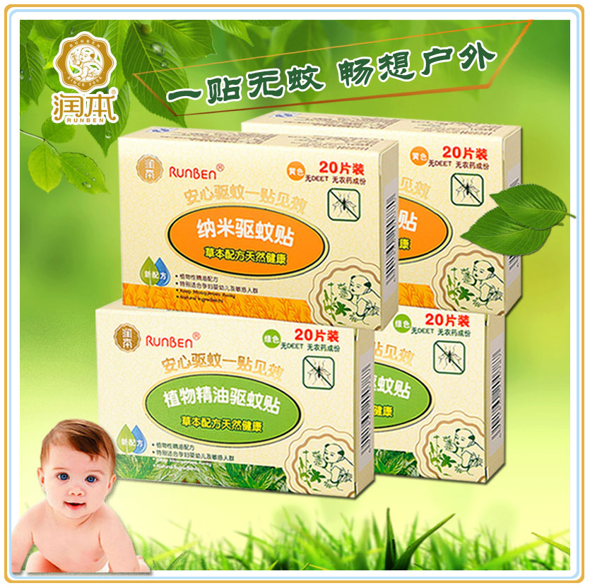 4盒80片润本驱蚊贴婴幼儿童宝宝孕妇防蚊贴卡通植物成人驱蚊贴片