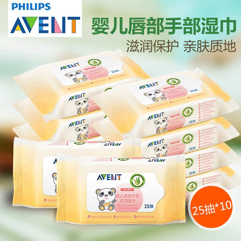 新安怡婴儿唇部手部柔润湿巾 宝宝湿纸巾儿童湿巾25抽10连包