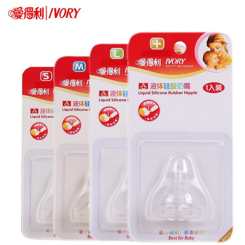 材质:硅胶 品牌:Ivory/爱得利 适用年龄:3个月以下.3-6个月.6个月以上 包装种类:单个装 奶嘴品类:奶嘴(单卖) 孔型:十字孔.小圆孔.中圆孔.大圆孔 口径大小:标准口径 颜色分类:硅胶奶嘴 货号:B24系列 规格:S小圆孔 适合0-3个月.M中圆孔 适合3-6个月.L大圆孔 适合6个月以上.十字孔 适合2个月以上 查看全文
