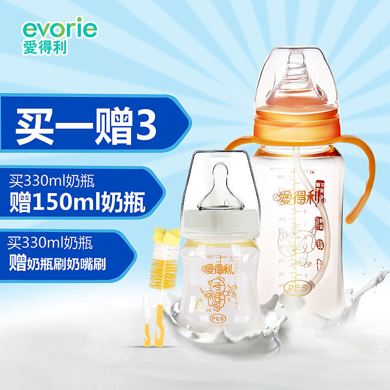 品牌:Ivory/爱得利 材质:其他 容量:330mL 口径大小:宽口径 形状:弧形 奶瓶是否带柄:带柄 系列:AA301 查看全文