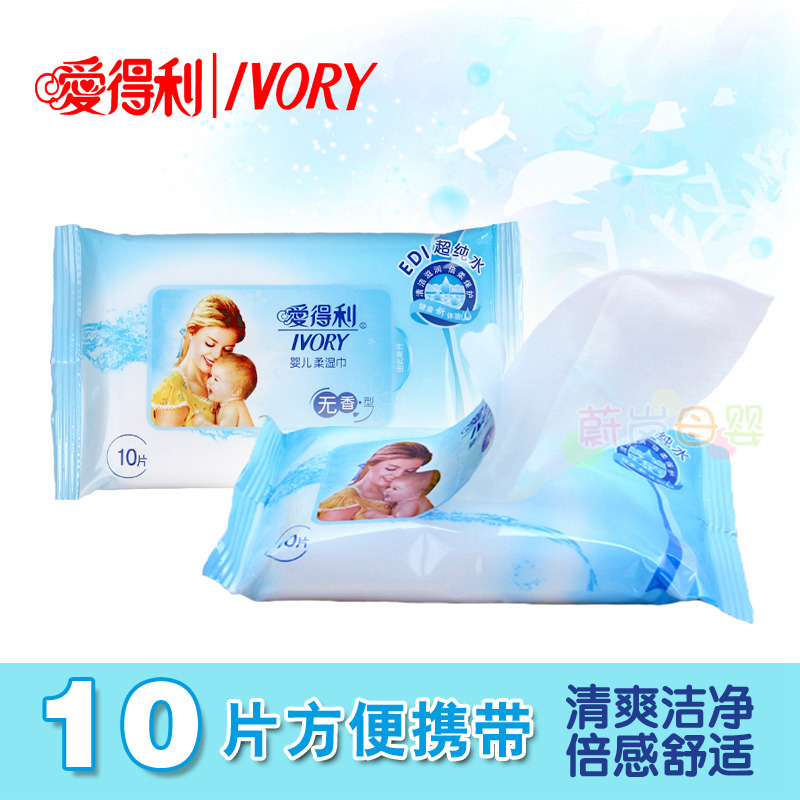 品牌:Ivory/爱得利 包装种类:随身装 湿巾用途:护肤专用 包装数量(片):10 系列:婴儿柔湿巾 规格:10抽 查看全文