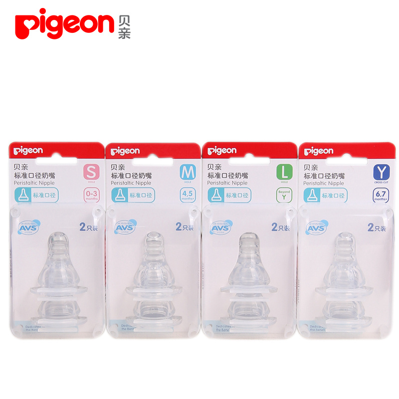 品牌:Pigeon/贝亲 材质:硅胶 颜色分类:2个装 适用年龄:3个月以下.3-6个月.6个月以上 奶嘴品类:奶嘴(单卖) 包装种类:2个装 口径大小:标准口径 孔型:小圆孔.中圆孔.大圆孔.Y字孔 货号:BA28-BA30 标口 规格:S 适合0-3个月 BA28.M 适合4-5个月 BA29.L 适合比Y饮用量大时BA30.Y 适合6、7个月以上BA31 查看全文