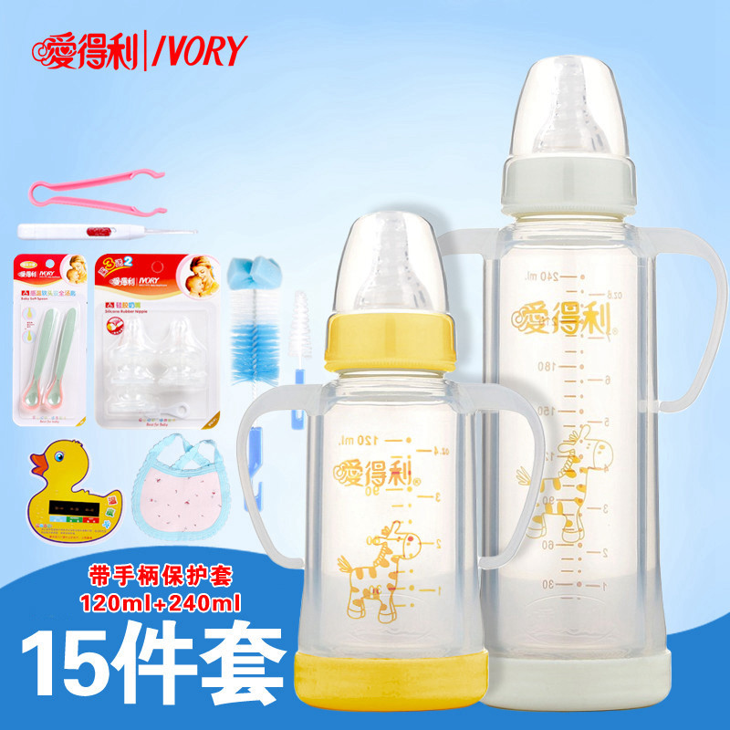 品牌:Ivory/爱得利 材质:玻璃 奶瓶是否带柄:带柄 口径大小:标准口径 形状:直身 容量:120ml+240ml 颜色分类:A92A93带保护套120ml+240ml 5件套.A92A93带保护套120+240ml 15件套.A92A93带吸管保护套120+240ml 17件套.A92A93带吸管保护套120+240ml 21件套 系列:标口晶钻玻璃奶瓶套装 查看全文