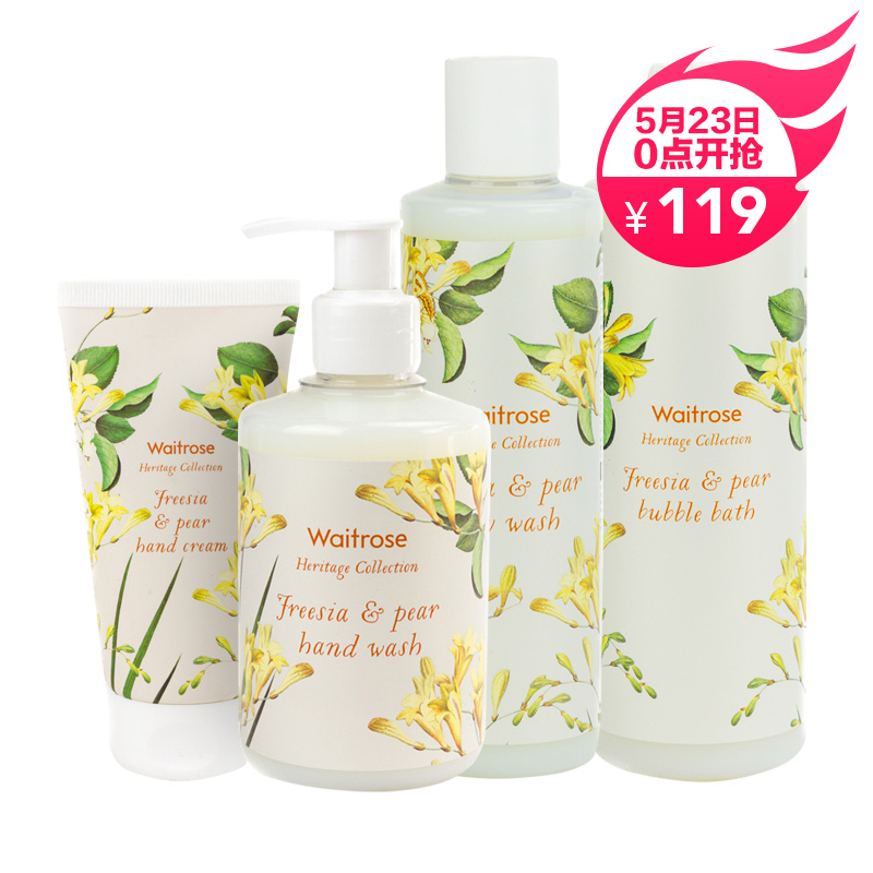 Waitrose小苍兰与梨洗护4件套装泡泡浴沐浴露润手霜洗手液直邮
