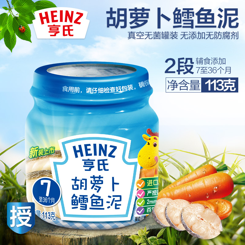 Heinz/亨氏 婴儿鱼肉泥胡萝卜鳕鱼泥佐餐泥113g 宝宝辅食泥2阶段