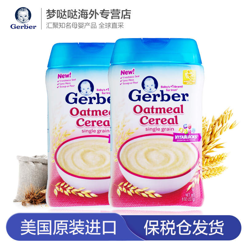 2盒】美国Gerber 嘉宝婴儿燕麦米粉227g宝宝2段营养米糊进口辅食