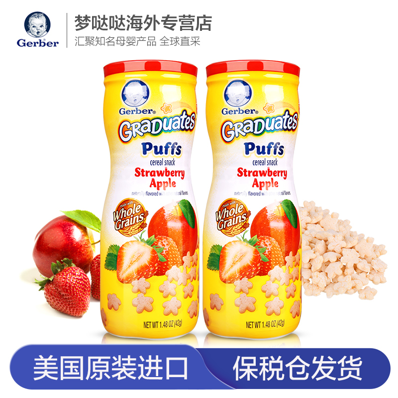 2瓶】美国Gerber嘉宝苹果草莓星星泡芙 婴儿辅食儿童零食宝宝食品