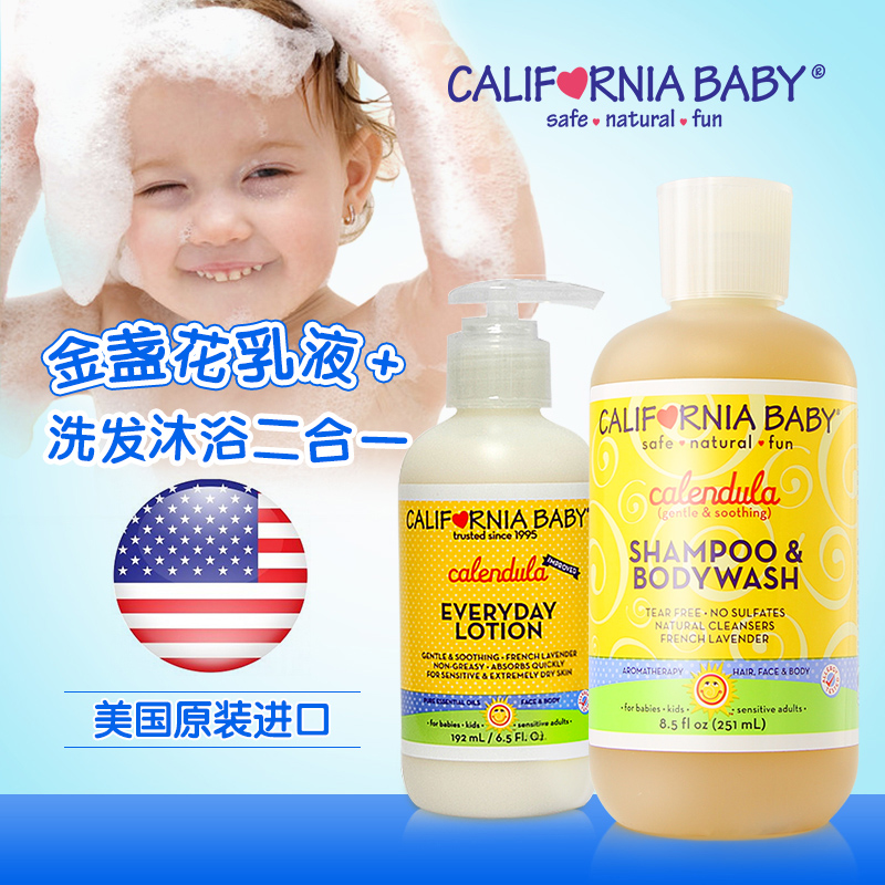 加州宝宝金盏花洗发沐浴露 日常乳液 婴幼儿童进口洗护超值套装