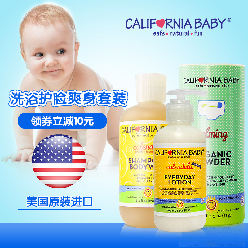 加州宝宝金盏花洗发沐浴露 日常润肤乳液 祛痱爽身粉 超值套装