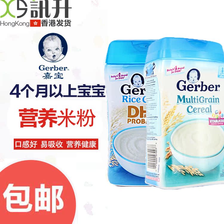 美国进口Gerber嘉宝米粉1段婴儿营养宝宝辅食婴幼儿DHA益生菌米糊