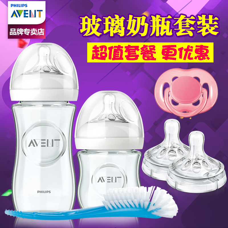 飞利浦新安怡自然原生玻璃奶瓶套装 新生儿宽口径防胀气奶瓶组合