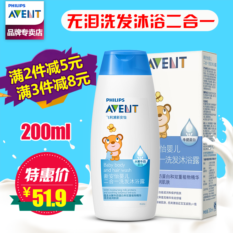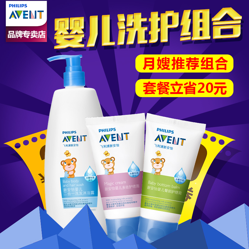 的热门产品飞利浦新安怡无泪洗发水沐浴露二合一+滋润保湿润肤乳液润肤霜