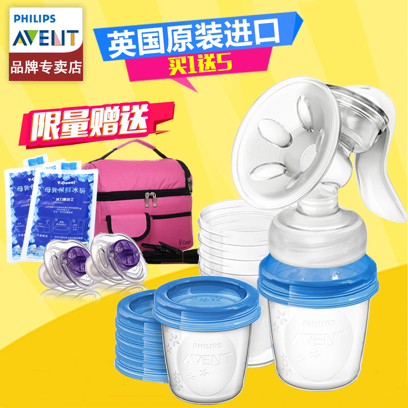 飞利浦新安怡自然原生VIA手动吸奶器 配母乳储存杯套装SCF330/13