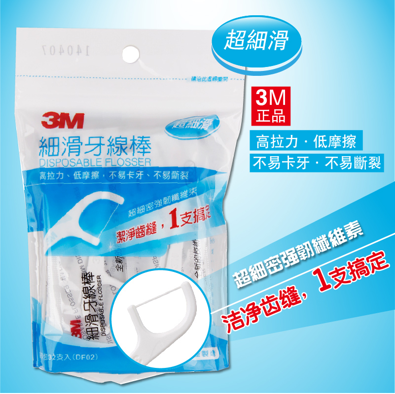 买5包邮进口3M牙线棒超细滑独立包装32入高拉力低摩擦超细剔牙线