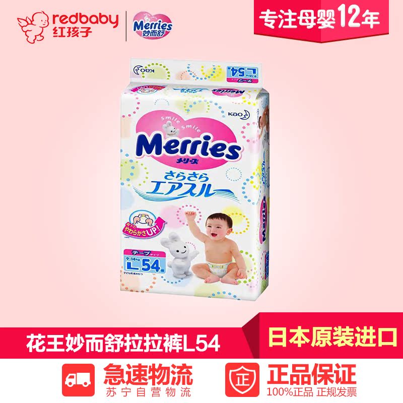 【红孩子母婴】花王(Merries)妙而舒纸尿裤大号尿不湿L54片纸尿裤