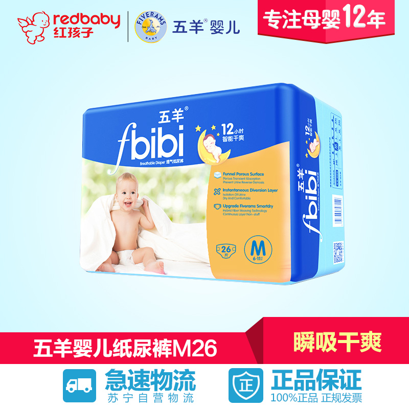 【红孩子母婴】五羊婴儿纸尿裤M码26片瞬吸干爽宝宝尿不湿