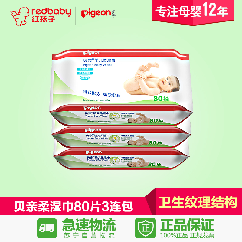 【红孩子母婴】贝亲婴儿柔湿巾80片3连包PL135