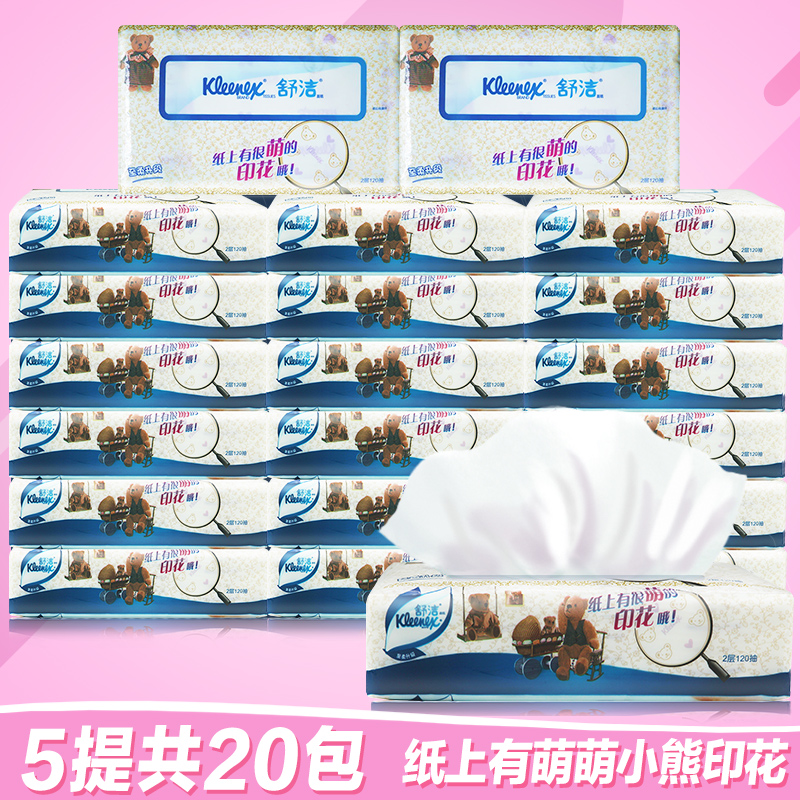 舒洁抽纸可可家族小熊印花纸巾120抽二层面巾纸组合 共20包