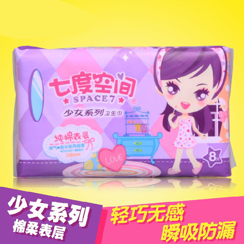 七度空间QSC6808 少女系列纯棉夜用卫生巾8片338mm