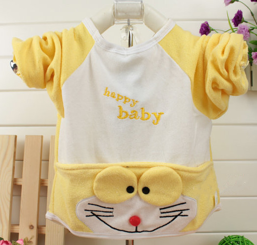 好伊贝毛巾布儿童罩衣卡通动物反穿衣饭衣画画衣防水长袖