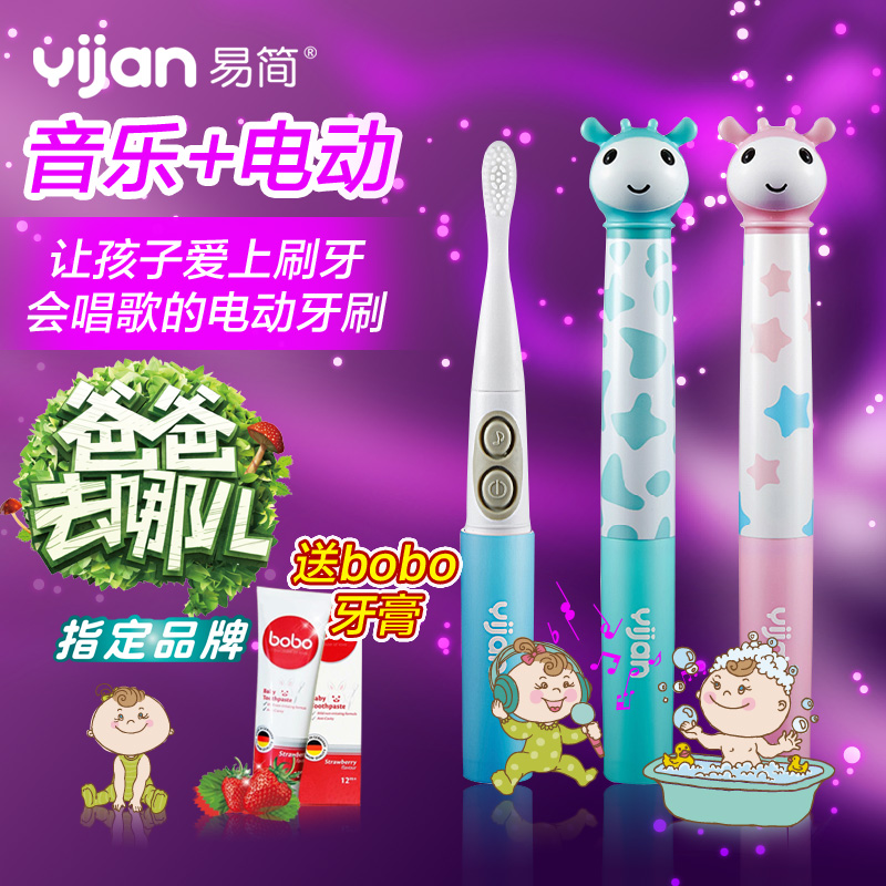 易简儿童电动音乐牙刷家庭装音乐小孩自动牙刷宝宝爱刷牙硅胶T2