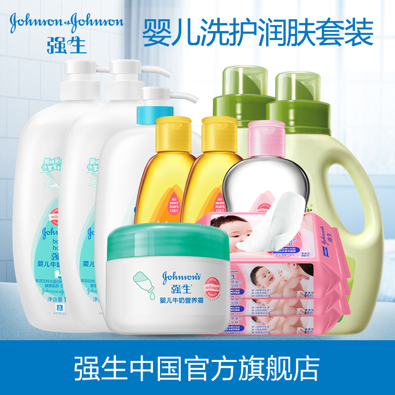的热门产品强生婴儿12件套装牛奶沐浴露洗发精润肤露润肤油营养霜湿巾洗衣液