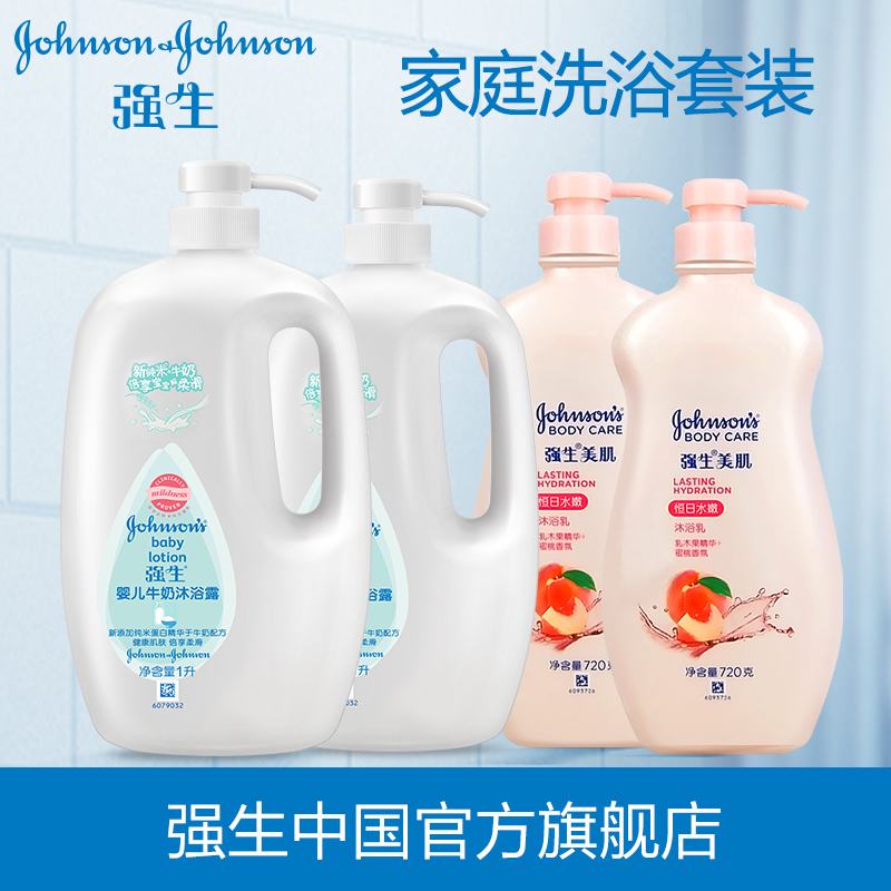 强生婴儿牛奶沐浴露1L*2+强生美肌恒日水嫩沐浴露720g*2家庭套装