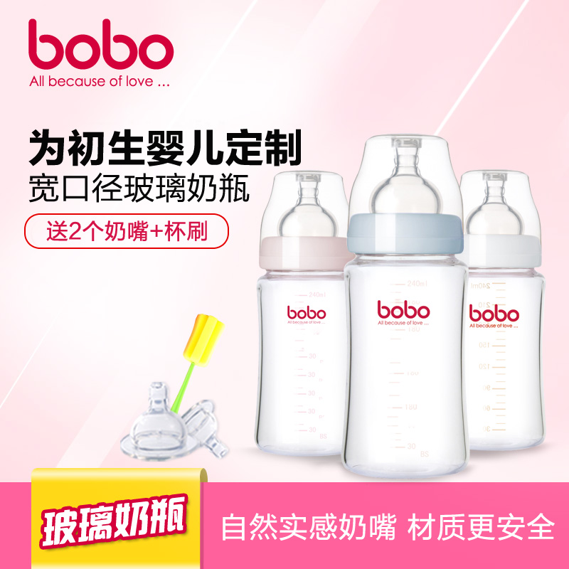 bobo乐儿宝婴儿玻璃奶瓶 宽口径玻璃奶瓶新生儿宝宝储奶瓶正品