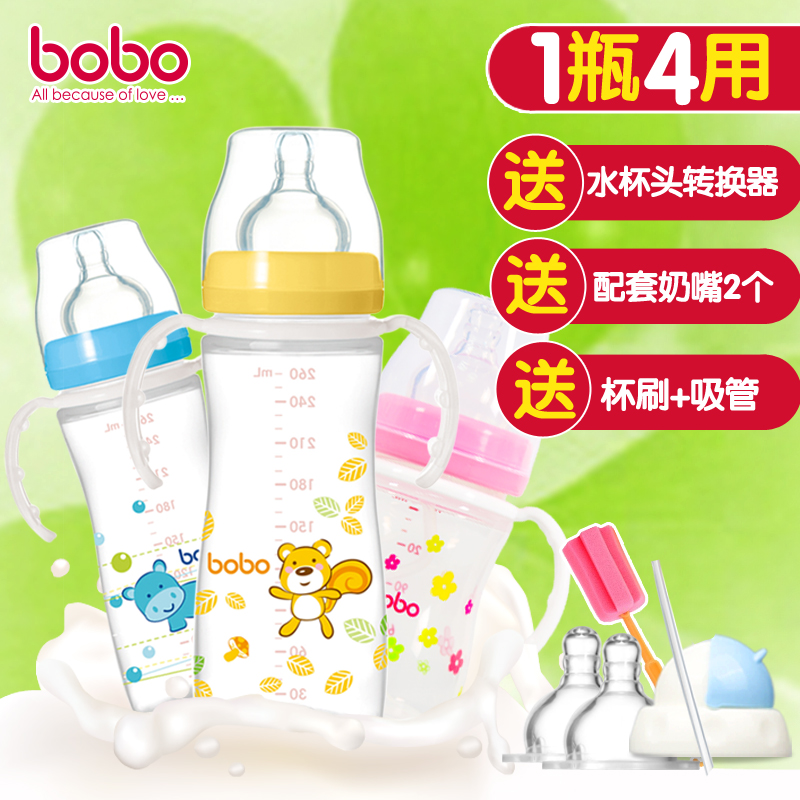 bobo奶瓶宽口径乐儿宝新生儿宝宝防摔奶瓶带吸管手柄婴儿喝水奶瓶