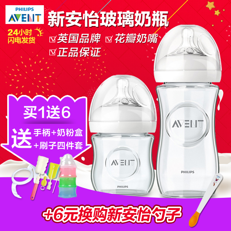 飞利浦新安怡玻璃奶瓶新生婴儿宽口径防胀气进口用品宝宝奶瓶正品