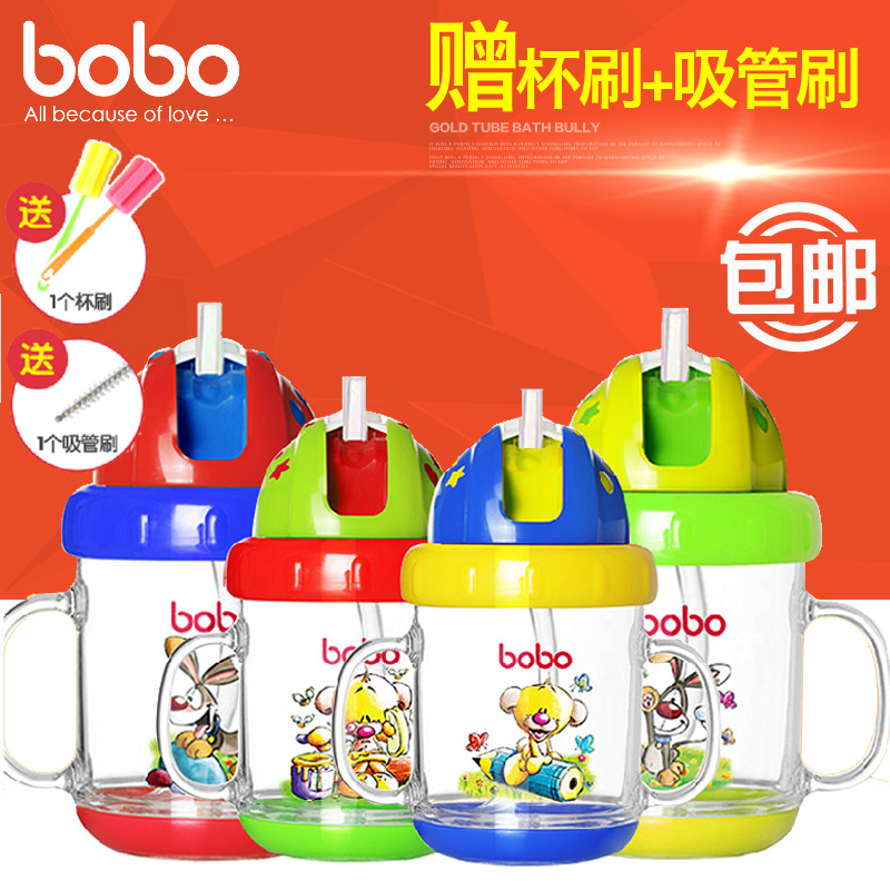 bobo乐儿宝婴儿学饮杯吸管杯儿童防漏水杯宝宝饮水杯喝水杯带手柄