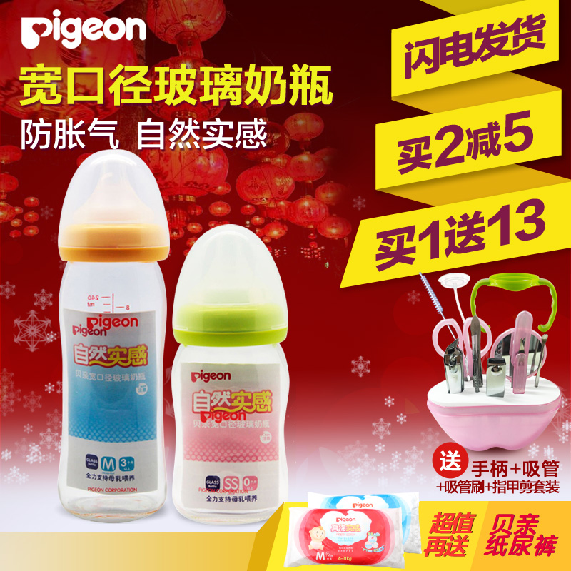 贝亲宽口玻璃奶瓶新生儿宝宝奶瓶婴儿防胀气奶瓶可带吸管手柄正品