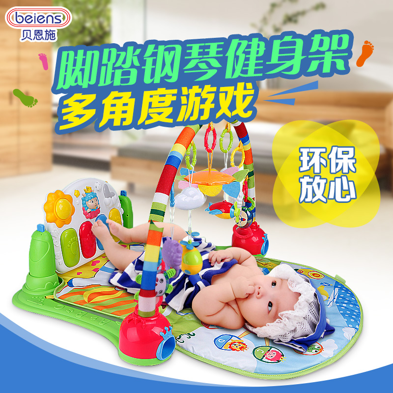 贝恩施宝宝健身架带音乐游戏毯婴儿早教多功能脚踏钢琴玩具0-1岁
