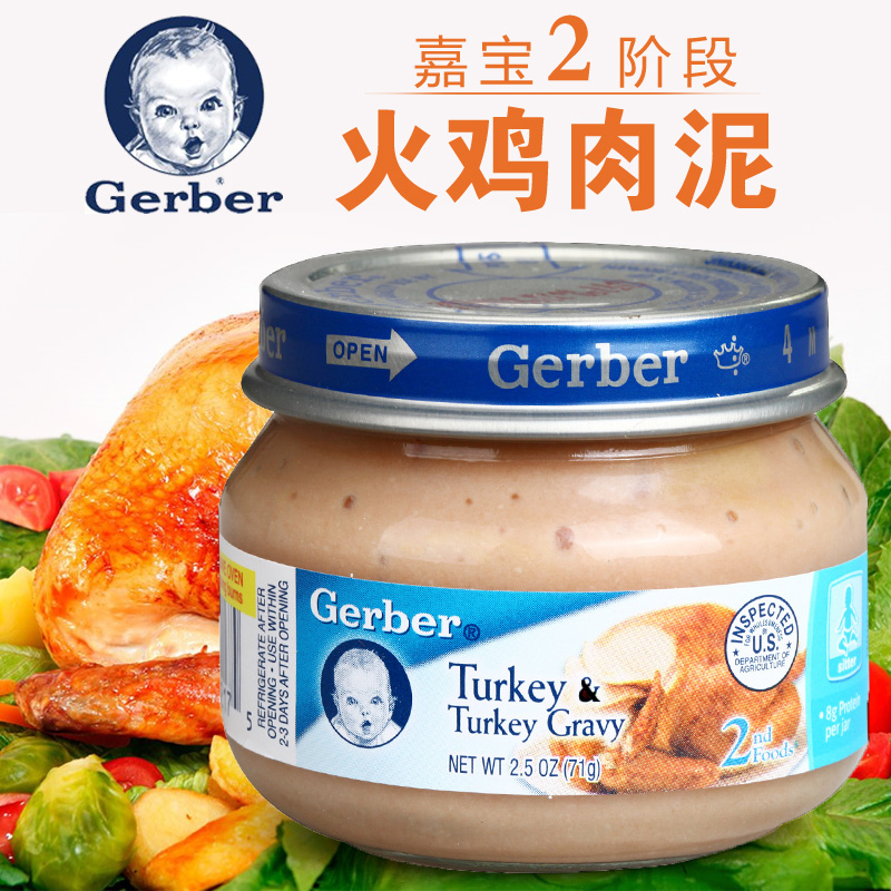 美国进口GERBER嘉宝2阶段火鸡泥果泥 宝宝辅食 婴幼儿零食 71g