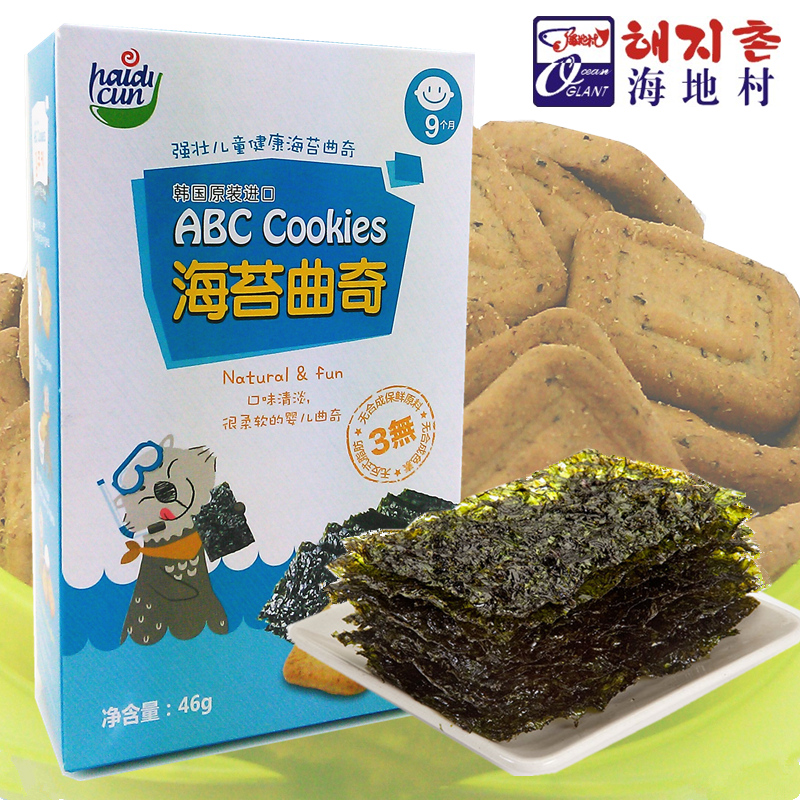 韩国进口海地村儿童饼干磨牙棒宝宝字母饼干海苔零食辅食46g