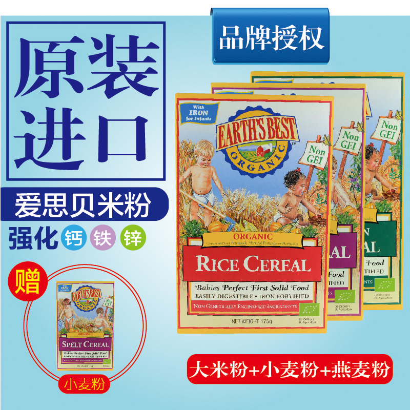 Earths best爱思贝宝宝辅食强化钙铁锌婴幼儿米粉有机营养3盒