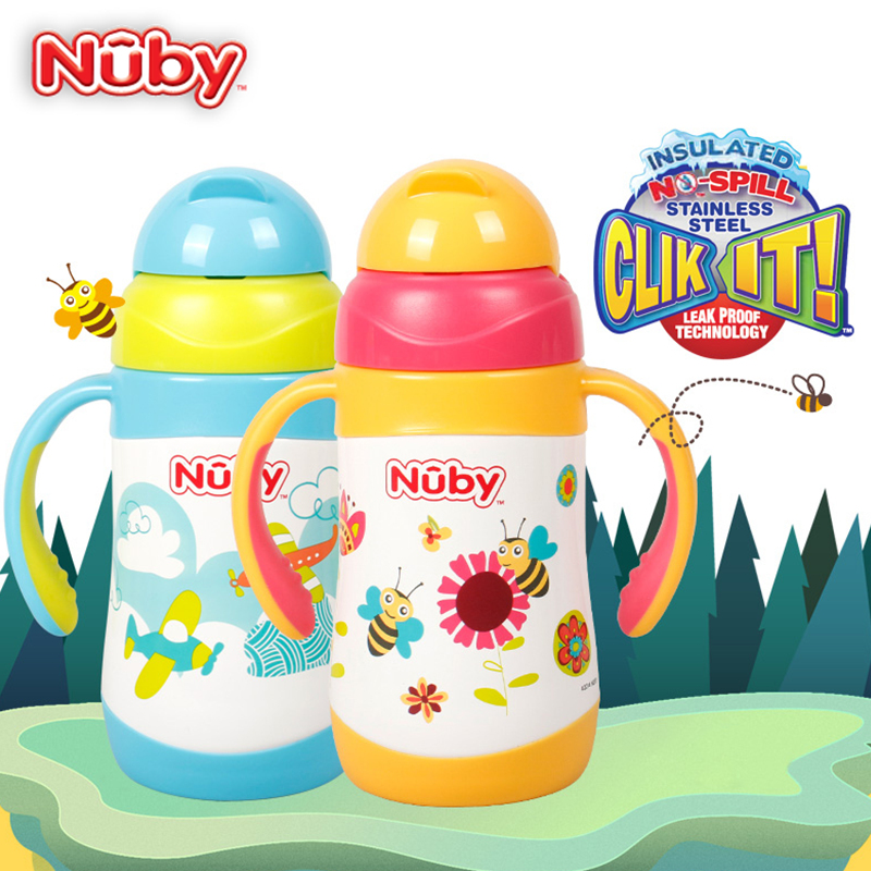 美国努比Nuby不锈钢保温杯儿童吸管杯带把手防呛宝宝水杯280ml