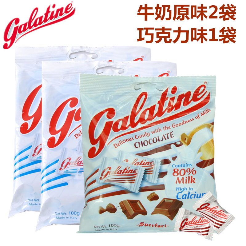 galatine佳乐定意大利进口宝宝零食牛奶片高钙奶糖原味巧克力组合