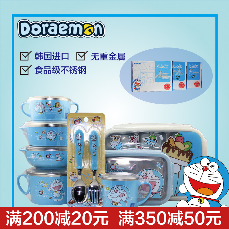 的热门产品韩国进口doraemon哆啦a梦婴幼儿童宝宝餐具不锈钢水杯碗套装送礼
