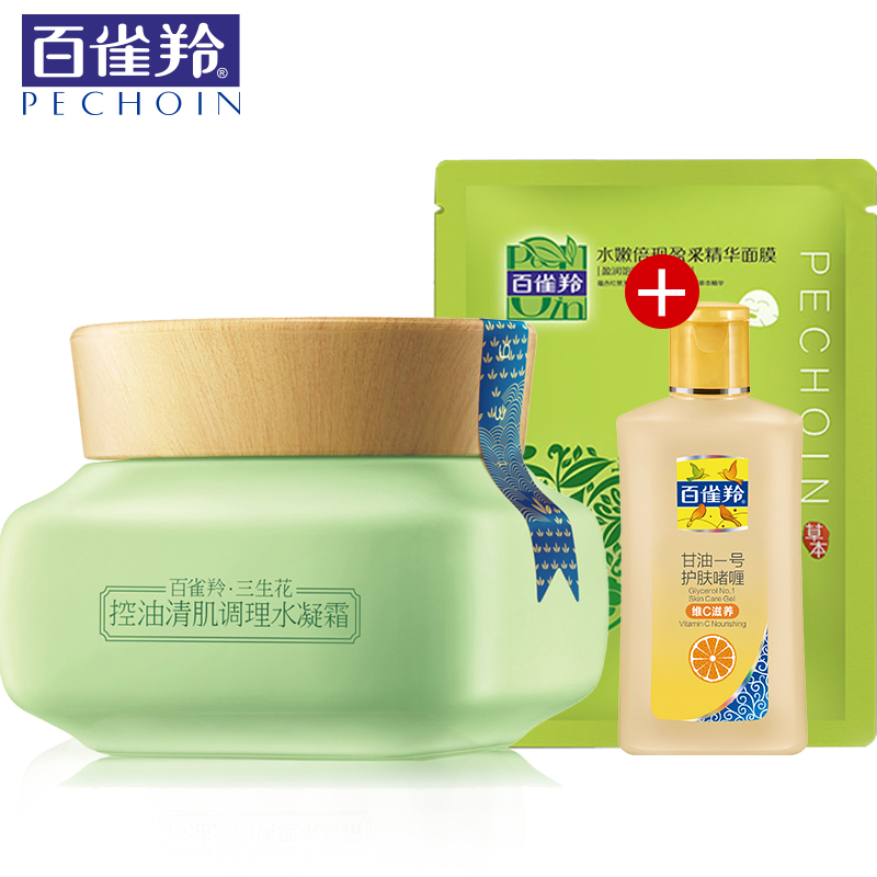 百雀羚三生花控油清肌调理水凝霜50g 女士面霜 补水霜保湿霜滋润