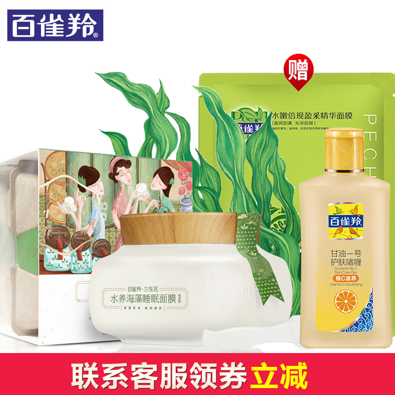 百雀羚面膜三生花水养海藻睡眠面膜200g补水保湿收缩毛孔免洗女