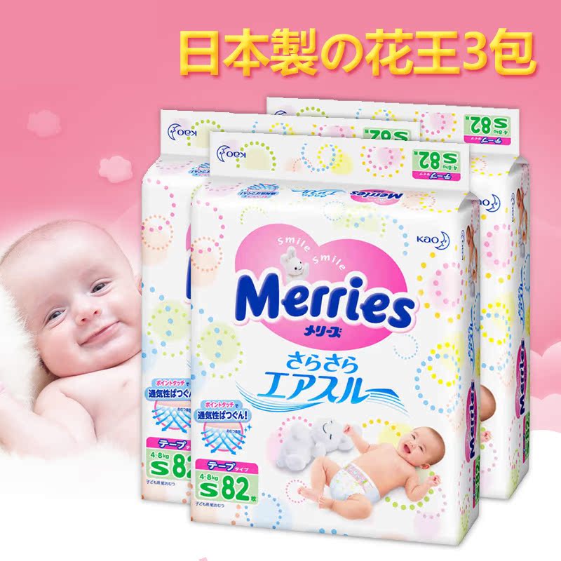 花王纸尿裤S82片 3包装 小号妙而舒瞬爽透气 男女尿不湿/宝宝尿片